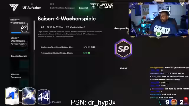 01:07:57Der Streamer öffnet weitere Packs und zeigt wenig Begeisterung über die Ergebnisse. Er betont, dass er nichts mit bestimmten Aktionen im Chat zu tun hat und distanziert sich davon. Der Streamer äußert sich besorgt über einen Zuschauer, der offenbar Probleme hat und rät ihm, frische Luft zu schnappen. Er versucht herauszufinden, wie man die Champions-League-Spiele am besten verfolgen kann und äußert Zweifel an der Übersichtlichkeit einer Konferenzschaltung. Der Streamer reagiert auf Kommentare im Chat und geht auf persönliche Anliegen ein. Er betont, dass er heute sehr käuflich ist und macht Späße darüber, was man mit ihm anstellen könnte. Er warnt jedoch davor, zu tippen und betont, dass Tippen in seinen Augen schlecht ist.