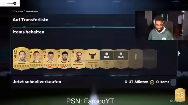 00:16:15Der Streamer spricht über Probleme mit Doppelwalkouts und Informs, und stellt fest, dass es schwer ist, diese zu ziehen. Er lobt seine Mods Ruffy und Daniel für ihre Unterstützung. Es wird überlegt, Points für Villa zu sparen, aber er plant, diese später wieder aufzuladen. Es wird überlegt, ob Leute ihm 'Auge machen'. Der Streamer erinnert sich an frühere Zeiten, in denen er sich nicht vorstellen konnte, so viele Points aufzuladen oder Spiele von EA Sports zu bekommen. Er erwähnt, dass er gestern 300k Points für Company ausgegeben hat. Der Streamer erkennt sofort einen Walkout von Mapeleon und findet es gruselig, wie schnell er die Spieler erkennt. Er öffnet Packs im Wert von 500 Euro, zieht aber keinen Walkout und entschuldigt sich für sein respektloses Verhalten, Walkouts nicht mehr durchlaufen zu lassen, aufgrund der Uhrzeit.