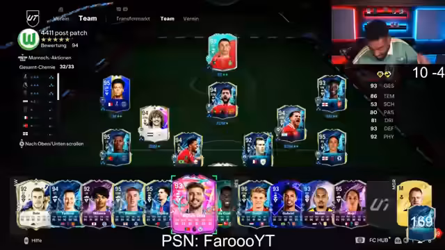 00:50:04Die Hauptphase des Streams besteht aus den letzten Spielen der Weekend League. Der Streamer muss die letzten drei Spiele gewinnen, um elf Siege zu erreichen. Während der Spiele gibt es regelmäßig kommentierende Analysen zu den Spielern, Entscheidungen und dem Spielverlauf. Neben den direkten Spielen spricht er auch über FIFA-bezogene Inhalte wie die SBCs, die Players-Of-the-Week- (POTW) und die TOTS- (Team of the Season) Karten, deren Werte und mögliche Upgrades er diskutiert.
