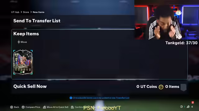 03:33:27Der Streamer analysiert die gezogenen Trophy-Titan-Player-Picks intensiv. Er ist skeptisch, ob Picks, die sehr häufig gezogen werden und daher günstig sind, wirklich stark sein können. Es wird der erste Pick als 88er-Karte aufgemacht, was er als reine Zeitverschwendung ansieht. Die Stimmung unter den Zuschauern ist gemischt, da einige User ihre Picks teilen und der Streamer versucht, herauszufinden, ob man tatsächlich kranke Karten ziehen kann oder nicht.