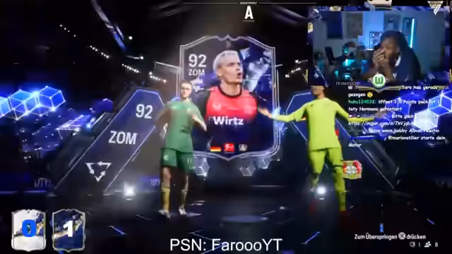04:29:16Neben den Packs wird über aktuelle Themen aus dem Fußball gesprochen. Der Streamer und der Chat diskutieren die möglichen Transfers von Spielern wie Musiala, Ademir und Valverde, und die Auswirkungen auf Vereine wie Borussia Dortmund und SSC Neapel. Dabei werden Transfer-Summen wie 8 Millionen Coins für einen TOTY-Nominee kritisch hinterfragt und die daraus resultierenden strategischen Vorteile für die Vereine analysiert.