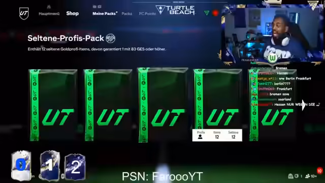06:21:25Die Spannung steigt, als das um 22:00 Uhr erwartete neue Shop-Pack versprochen wird. Vorher öffnet der Streamer jedoch ein anderes Pack und zieht einen TOTY-Nominee, was vorübergehend für Freude sorgt. Kurze Zeit später zieht er aus einem weiteren Pack die Special Player Card von Eike Hopp, was kurzzeitig die Stimmung hebt. Dieser kurze Erfolg steht im Kontrast zu den zuvor andauernden Enttäuschungen, doch die Stimmung bleibt gedämpft.