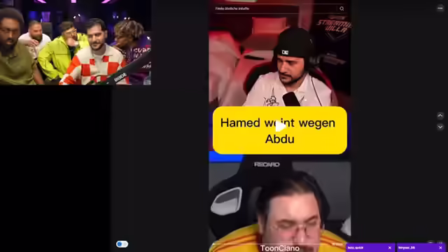 02:59:41Cut in the stream! Digga! Was geht ab? Ich dachte, wir kommen erst in einer Stunde oder so, Digga. Wie geht's? Wie seid ihr gefahren? Seid ihr angekommen? Gut. Ja, Gott sei Dank, Bruder. Welchen dämlichen bist du? Bruder, Wale hofft, diese Fragen zu stellen, Bruder. Welchen dämlichen bist du selber? Fünf, Bruder. Aber ich spiel nicht so viel bei mir. Okay. Ich mach so Packs aktuell, Draft und so, Bruder. Wer ist besser, du oder Armin? Bruder, mach diese Frage nicht. Wir hatten Binderstreit, das ist wegen dieser Fitna-Frage. Okay, wo haben wir? Da bist du gut! Du sagst, du sagst auch? Ja, Bruder, aber... Jetzt ist FIFA gekauft, Bruder. Aber? Ich versuche gerade reinzukommen, aber es ist ein bisschen hart, ja? Warum ist es hart? Ist du anfängerfreundlich, Bruder? Ja. Findest du mich? Bruder, du bist Division 5. Ja, aber ich habe noch nicht ernst gespielt, Bruder. Ich werde eigentlich 3, bestimmt. Ja, ja. Wichtig, wie seid ihr denn? Hast du dich auch geholt? Ich habe doch gar keine... Ich zock 2K gerade. Ah, Bruder, hör mal auf. Warum? 2K, Bruder. Boah, jedes Jahr. Es kommen Gäste in den Stream, darunter Sommer, Jam und Billa Joe. Es wird über FIFA diskutiert, wobei die Gäste unterschiedliche Meinungen zum Spiel haben. Es wird über Haartransplantationen und das Aussehen des Streamers gescherzt. Die Gäste bringen Geschenke mit und es wird über frühere Erlebnisse gesprochen, darunter eine Begegnung mit dem Schauspieler Vincent Cassel in Rio de Janeiro. Es wird über das neue FIFA-Spiel (EAFC) diskutiert, wobei die Gäste unterschiedliche Spielmodi bevorzugen. Der Streamer erwähnt eine Kooperation mit Wolfsburg.