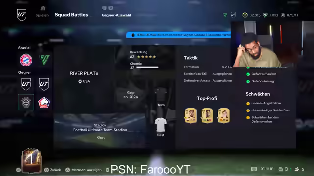 faroooyt startet die Road to Glory in FC 26, spricht über Kartenpreise und Teamaufbau. Er öffnet Packs, diskutiert den RTG-Status und spielt den Draft-Modus. Taktikänderungen, Diskussionen über Spielszenen und der Draft-Verlust prägen den weiteren Verlauf. Es folgen Tutti Calls, Verbindungsprobleme, Hotchip-Challenges und Draft-Erfolge.