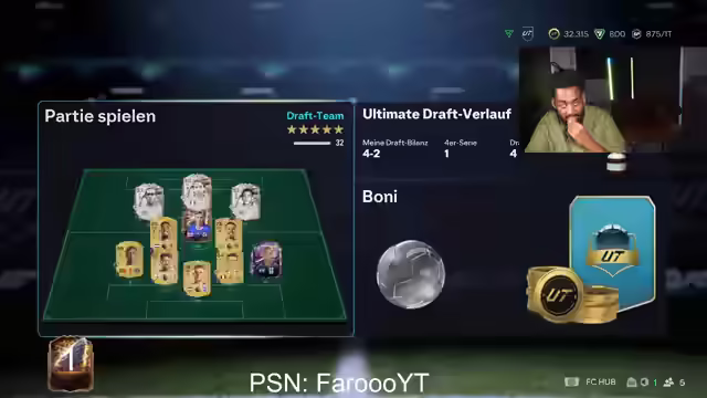 00:28:40Der Streamer klärt auf, dass er die Vorbesteller-Version des Spiels hat und nicht mehr auflädt als andere Spieler. Er diskutiert, ob jemand, der die Ultimate Edition kauft, aber nicht zusätzlich auflädt, trotzdem als RTG-Spieler gilt. Er selbst hat den Bonus der Ultimate Edition nicht, da er ihn bereits auf einem anderen Account eingelöst hat. Der Streamer macht die Ultimate Vorbereitung und erhält keine Icon. Er kauft den Premium-Pass und verkauft Ikitiki. Er beginnt mit SBCs (Squad Building Challenges), um Intro-Aufgaben zu erledigen. Nach den Intro-SBCs plant er, Draft zu spielen. Er schließt die Intro-SBCs ab und erhält zwei Profi-Packs. Der Streamer überlegt, ob er zuerst Moments spielen soll, um einen Pick zu bekommen, entscheidet sich aber dann für Draft.