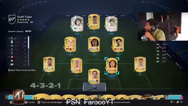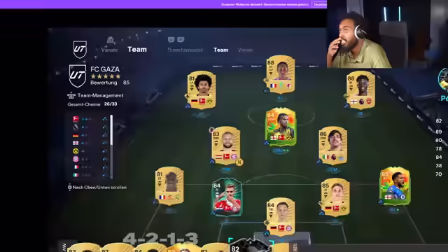 01:25:11Es wird über eine mögliche Nominierung von Arda Güler für das Team of the Week spekuliert, wobei der Streamer andeutet, dass er ihn auf jeden Fall spielen würde. Es wird über frühe Draft-Verluste gesprochen. Der Streamer äußert Frustration über das Spiel und kündigt an, in Packs zu investieren anstatt weiter Draft zu spielen. Er beschwert sich über Stress und stummschaltet jemanden im Chat. Es wird über eine verlorene Wette gesprochen und die Notwendigkeit eines Draft-Tokens von EA Sports gefordert. Der Streamer kommentiert die Formation und einzelne Spieler, darunter Chavinga, Bergkamp und Hollert. Es wird überlegt, welche Spieler man auswählen soll, darunter Cola, Marquinhos und eine Icon. Der Streamer äußert sich zufrieden mit der Auswahl von Florian Wirtz und plant, eine Rechtsverteidigerin aus Brasilien zu wählen. Er bedankt sich für einen Raid und begrüßt neue Follower. Der Streamer erklärt, dass er eine RTG (Road to Glory) gestartet hat und bereits zwei Drafts in der ersten Runde verloren hat. Er hofft, mit dem aktuellen Team gewinnen zu können und kündigt an, sich zu konzentrieren und kurz auf die Toilette zu gehen.