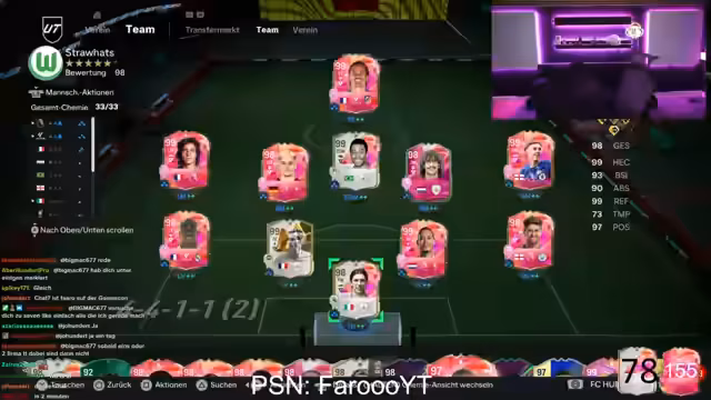 00:23:49Der Streamer widmet sich intensiv dem Thema FIFA 26, genauer gesagt dem FUT-Modus. Er spricht über Spielerpreise und verlustreiche Transaktionen wie den Verlust von 800k Coins durch die Messi-Karte. Er versucht, seinen FUT-Club aufzupeppen, indem er mehrere 10er-Packs öffnet, ist aber frustriert über die vielen 84er-Karten und das Ausbleiben seltener Spieler. Er plant, den Season Pass zu holen und eine Verlosung auf Instagram anzukündigen.