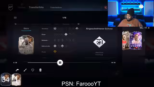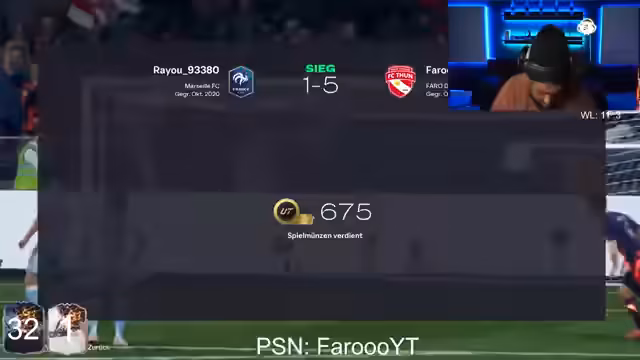 02:48:22Bei der Anzeige des Spielverlaufs wird deutlich, dass eine knappe Niederlage am Ende des Wochenligen-Spiels den Streamer ärgert. Die Stimmung sinkt, da er sich durch spielinterne Mechaniken wie einen Disconnect und einen Fallrückzieher-Bug benachteiligt fühlt. Gleichzeitig wird die Frustration über geringe oder keine Belohnungen aus den geöffneten Packs deutlich.