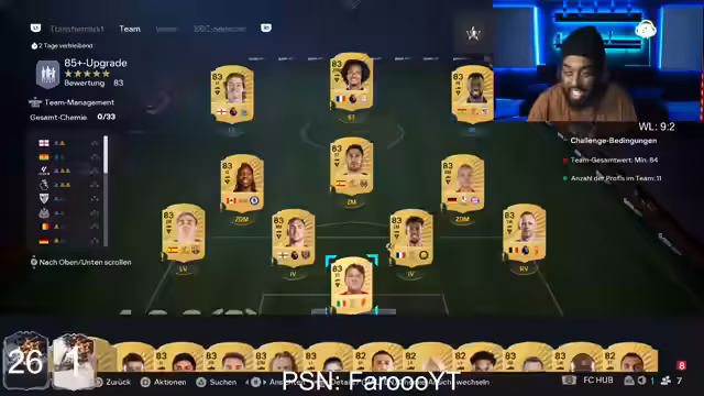 00:16:51Im weiteren Verlauf des Streams präsentiert der Streamer diverse neue Evo-Karten wie Reiten und Taha Ali, gibt Tipps zur Finesse-Evo und empfiehlt SBCs wie den Chaos Alberto. Er beantwortet Fragen zu anderen potenziellen SBC-Kandidaten wie Köhmann und Capita und diskutiert die strategische Entscheidung, welche Spieler für welche Evos am besten genutzt werden können. Er äußert auch seine Frustration über den generellen Zustand des Spiels.