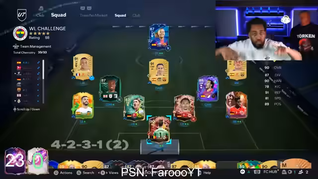 02:57:05Das Hauptthema ist nun der Aufbau eines Teams für die bevorstehende Weekend League Challenge auf einem zweiten Account. Der Streamer diskutiert intensiv über die Besetzung, insbesondere auf den Positionen Linksverteidiger und Rechtsmittelfeld. Er geht auf Spielerstatistiken, Chemie-Potenziale und Budgetfragen ein, um ein optimales Team für den Erfolg zu erstellen.