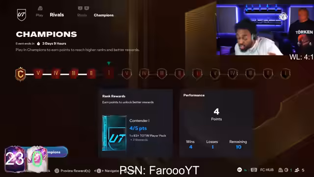 06:49:56Der Streamer diskutiert über die schwierige Weekend League, die nach seiner Meinung durch schlechte Gegner und unfaire Spielweise geprägt ist. Er äußert sich negativ über das Spielprinzip, das er als unfair und frustrierend empfindet. Gleichzeitig appelliert er an die Zuschauer, ihre Powerbanks clever einzusetzen, um Vorteile zu erlangen.