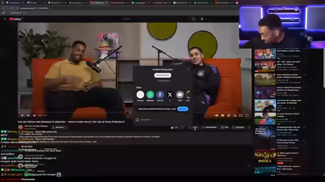 01:36:31Der Streamer fordert die Community auf, die neue Podcast-Folge bei Spotify zu bewerten und auf YouTube anzusehen. Er fragt den Chat, ob ein qualitativer Unterschied zwischen der Podcast-Kamera und seiner eigenen Kamera bemerkt wurde, und äußert sich über die geplante Zusammenarbeit mit Kollegen wie Hamudi Koubadour. Er betont, dass er ehrliche Kritik wünscht, beleidigungen jedoch nicht toleriert sind.