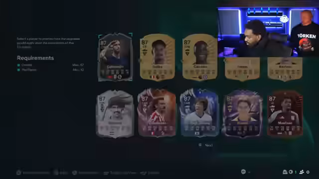 01:50:04Der Streamer geht auf die täglichen Anmeldungen ein, bei denen man durch mehrmaliges Mitmachen Playstyles wie 'Jockey' und 'Abdrängen' kostenlos bekommen kann. Auch der TOTYYYY Warm-up Cup wird vorgestellt. Für diesen muss man zwölf Spiele bestreiten und sechs Tore schießen, um Belohnungen wie Playstyle-Plus-Evos und Packs zu erhalten. Der Streamer empfiehlt, für diese Events neue Spieler zu verwenden, um daraus eine Evo-Kette zu erstellen.