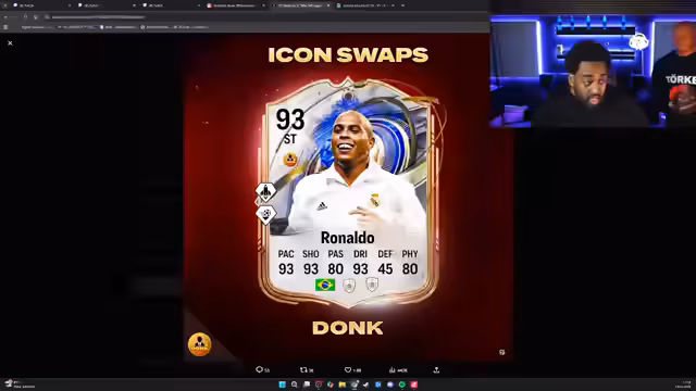 00:17:43Ein Leak, der für große Aufregung sorgt, ist die Ankündigung, dass ein 93er Ronaldo (R9) in den Icon Swaps verfügbar sein soll. Der Streamer diskutiert die Plausibilität und die Details. Der R9 könnte gratis erspielt werden, wobei es wahrscheinlich 25 bis 30 Tokens kosten wird, um ihn komplett zu erhalten. Die Vermutung geht dahin, dass die letzten ein oder zwei Tokens sehr schwer zu bekommen sein werden, entweder durch extrem schwere Aufgaben oder den Kauf von Shop-Packs.
