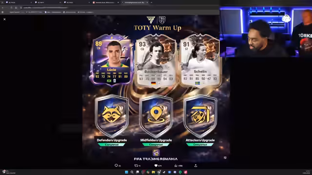 00:06:40Die offizielle Ankündigung des Team of the Year Warm-Up erfolgt, bei dem der Streamer die ersten Leaks für die kommenden Tage und Wochen bespricht. Es werden täglich um 19 Uhr Upgrade Packs für das Team of the Year erwartet. Der Streamer geht auf die geleakten Inhalte ein, darunter die ersten SBCs, welche die Spieler Chilena, Beckenbauer und Lucia betreffen. Zudem wird erwähnt, dass es Upgrade-Packs für Angreifer geben wird, die dreimal wiederholbar sind.