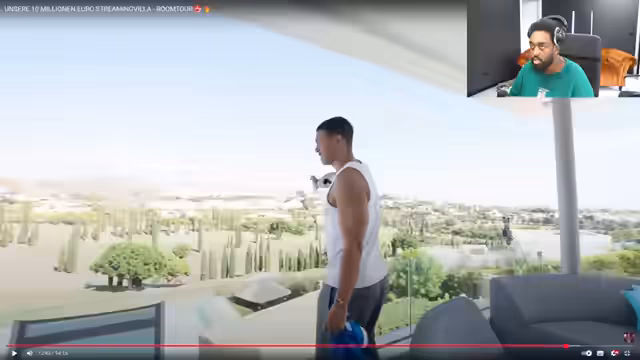 05:26:18Der Streamer präsentiert eine ausführliche Tour durch die luxuriöse Villa, in der er und sein Team die letzten Tage waren. Er betont, dass Eli die Kosten für die Unterkunft, Verpflegung und Transporte vollständig übernommen hat. Die Tour führt den Zuschauer durch verschiedene Etagen, darunter mehrere geräumige Wohnzimmer, eine High-End-Küche, private Zimmer mit Bädern, einen Gym-Bereich, eine Sauna, einen Kinoraum und einen Pool mit Meerblick. Die Größenverhältnisse und die Ausstattung der Villa werden immer wieder betont und als surreal und traumhaft beschrieben.