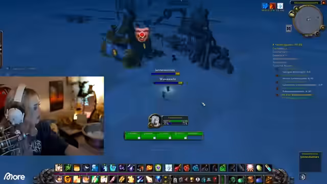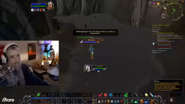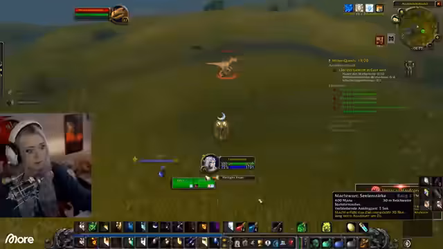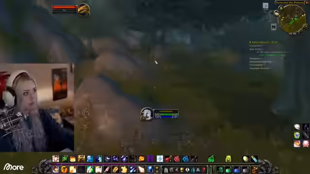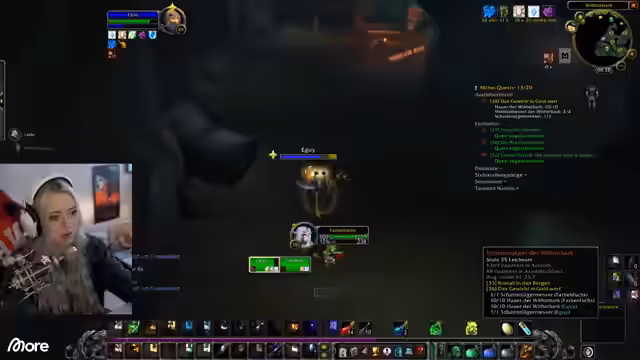00:47:22Nach einem technischen Problem und dem Testen von Audioeinstieg startet der Streamer ins Spiel World of Warcraft. Mit seinem Pocketheister auf Level 15 beginnt er in der Region Darkshore mit Quests und dem Grinden von Monstern zur Erfahrungspunkte-Generierung. Er trifft auf eine Mitspielerin namens Juni und beide entdecken, dass das Farmen von Mobs der gleichen Levelstufe, insbesondere mit einem guten Buff, eine effizientere Methode zum Leveln sein kann als das Erledigen von Quests.