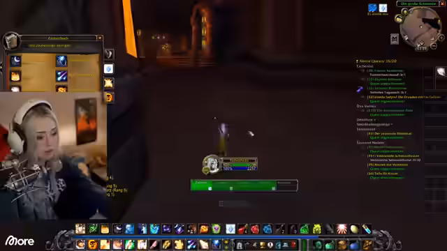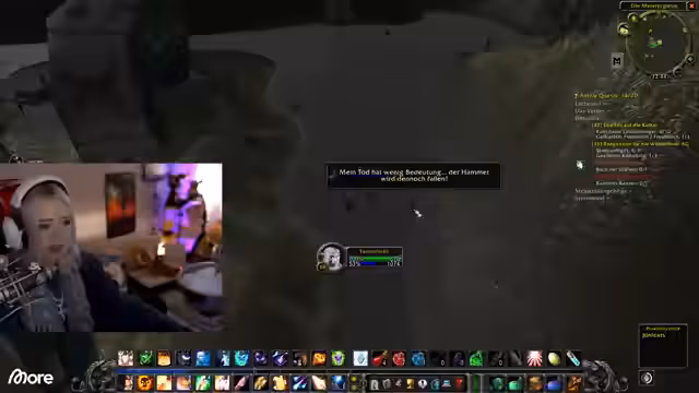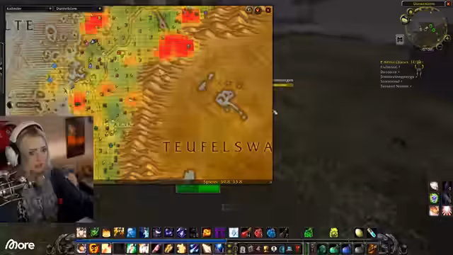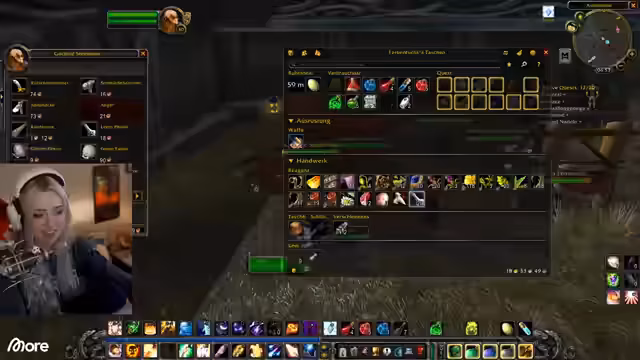 12:21:05Der Streamer hat einen vollen Questlog und überlegt, ob er eine hochstufige Quest abbrechen soll, um Platz für eine schnell erledigbare Aufgabe zu schaffen. Es wird über Berufe in World of Classic gesprochen, wobei die Option erwähnt wird, zunächst nur Sammelberufe zu lernen, um Material zu farmen, und später einen produktiven Beruf wie Schmied zu wählen. Ein Neuling im Spiel wird gefragt, ob er die meisten Gebiete kennt, und die Streamer geben Hinweise für das Schlingendorntal, das wie Alpen, aber nicht ganz oben, beschrieben wird.