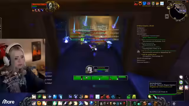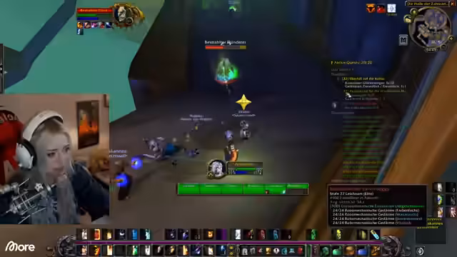 06:51:18Die Gruppe kämpft sich durch einen Dungeon und muss dabei auf spezielle Mechaniken achten. Es werden Minen erwähnt, die erheblichen Schaden verursachen, und ein Ring für eine Quest, der von Zwergen gedroppt werden kann, ist das Ziel. Bei einem Boss muss ein Spieler auf Reflektoren achten. Die Dynamik in der Gruppe ist offenbar locker und充满开玩笑, über spielerische Fehler wird gelacht. Der Streamer zeigt sich als effektiver Heiler, der nur selten eingreifen muss.