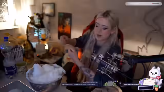 09:04:18Der Streamer unterhält sich mit dem Chat über hypothetische Hobbys, die er im Leben gerne hätte. Er würde gerne singen, rappen, malen oder ein Instrument wie Geige oder Cello lernen können. Gleichzeitig wird über die Stream-Zukunft gesprochen. Nach 11 Stunden Streaming ist der Streamer noch nicht müde und möchte Level 36 vollmachen. Die Stimmung im Chat ist locker und es kommt zu humorvollen Themen wie der 'Farbenfisch'-Erzählung und einem 'Peitschen-Nemot'.