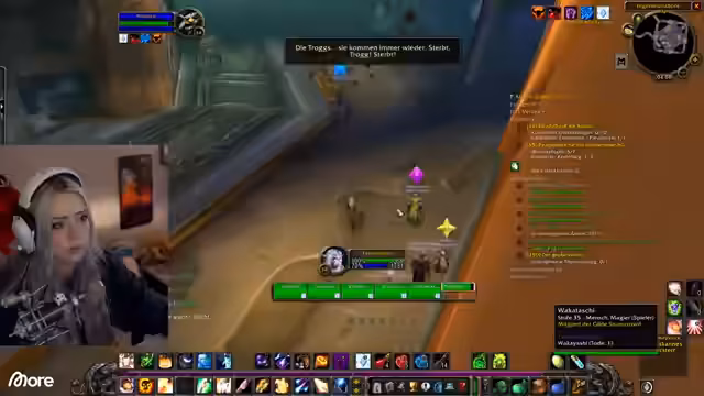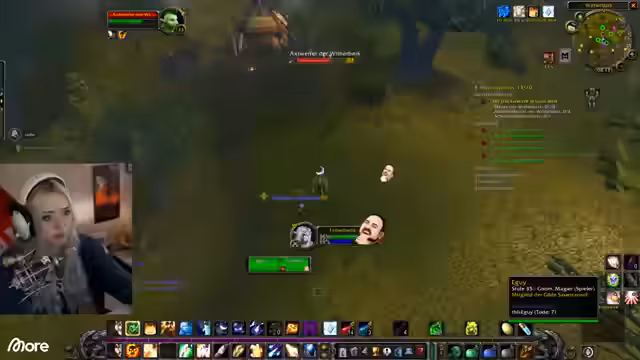 07:59:47Der Streamer spricht über zukünftige Inhalte, neben WoW auch Coworking-Streams für die Uni oder andere k Streams. Bei der Charakterentwicklung im Spiel wird über Stats und das Outfit diskutiert. Der Fokus liegt auf dem Gameplay: Einmal wird versehentlich ein Teleportpunkt falsch gesetzt, was zu Verwirrung führt, und ein weiterer Mal wird versehentlich ein Mob getötet, was zu einem unerwarteten Kampf führt. Auch ein spezieller Trank namens 'E-Mann Nachttop' wird erwähnt.