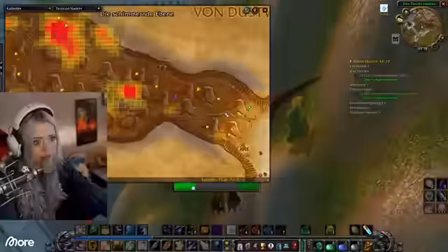 11:34:50Der Stream startet ein Quiz, in dem Maurice die nächsten WoW-Gebiete erraten muss, indem der Streamer sie mit reellen Orten vergleicht. Maurice tappt im Dunkeln, vermutet Orte wie Brennende Steppe oder Desolace, was vom Streamer jedoch verneint wird. Die Anspielungen sind kryptisch und beziehen sich auf Persönlichkeiten wie den Hamburger Fußballer Sergej Barbarez, was Maurice aber nicht lösen kann.