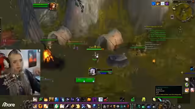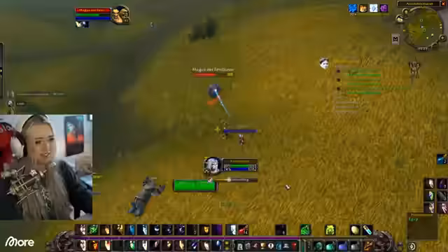 12:04:52Im Rotkamm-Gebirge werden hauptsächlich Tiere wie kleine Drachen, Spinnen und Genolle angetroffen, wobei der Fokus nicht auf menschenähnlichen Gegnern liegt. Die Streamer diskutieren über die Benennung von Pets bei Hexern, die versklavt werden und zufällige Namen erhalten. Die Kombination aus Mage und Priest wird als effektiv für schnellen Schaden, aber als Glaskanone beschrieben, die wenig aushält. Während der Jagd nach Lord Krokoli werden verschiedene Taktiken und Fähigkeiten wie Granaten und Leerwand eingesetzt.