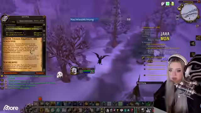 03:08:05Zu Beginn des Chunks wird die Koordination für verschiedene Quests im Vordergrund stehen. Der Streamer und die Community diskutieren über benötigte Materialien wie Kodo-Bohnen, Illusions- und Traumstaub sowie Runenstoff. Es werden wiederholt Angebote für den Tausch von Ressourcen ausgesprochen, während der Streamer bestätigt, dass er diese bereits habe oder sie leicht beschaffen kann. Der Fokus liegt darauf, die Materialien für alle Gruppenmitglieder zugänglich zu machen, um den gemeinsamen Fortschritt in den Quests zu ermöglichen.