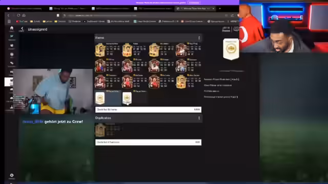 02:15:22Nachdem er in verschiedene Packs investiert hat, zeigen die Ergebnisse nur enttäuschende Karten, was zu Frust führt. Der Streamer stellt fest, dass die Karten teuer sind, aber keinen nennenswerten Wert haben. Beim anschließenden Bau von Teams für den Weekend League-Modus trifft er eine schlechte Wahl und muss später feststellen, dass seine Team-Konfiguration unterlegen ist. Er testet letztendlich die Karten Modric, Müller und Rüdiger in einem Team, was aber zu weiteren Frustrationen führt, da er mit dem Spielstil und den Leistungen unzufrieden ist.