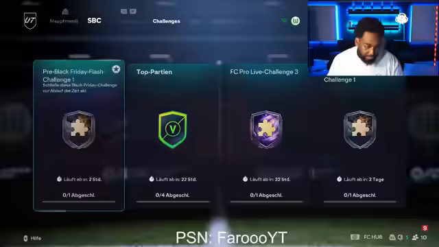 00:01:12Der Stream beginnt mit der überraschenden Ankündigung, dass der Black Friday bereits heute startet und nicht erst traditionell am Freitag. Der Streamer ist von der dichten Inhalte-Anspruchung überrascht und nennt eine Vielzahl an geplanten Veröffentlichungen. Dazu gehören heute die 'Best of Team of the Week' Karten mit einer Flashback SBC, morgen die 'Best of Promo' und am Freitag der 'Thunderstruck' sowie eine neue Saison. Der Betonung liegt darauf, dass die Nutzer ihre Ressourcen wie Rivals und Squad Battles sparen sollten, da die gute Karten durch Special-Karten ersetzt werden.