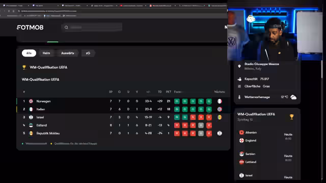 01:12:24Der Streamer kommentiert leidenschaftlich ein Fußballspiel zwischen Ungarn und Irland in der 95. Minute, bei dem Ungarn durch ein entscheidendes Tor den zweiten Platz und damit die Playoffs sichert, während Irland aus der WM ausscheidet. Er äußert seine Bewunderung für solche emotionalen Momente im Fußball und stellt sich vor, wie es wäre, als Spieler ein solches Tor für sein Land zu erzielen. Anschließend wechselt die Diskussion zu anderen WM-Qualifikationsspielen, darunter die Türkei, Kosovo und die Schweiz gegen Schweden. Die Aufregung ist groß, als die Schweiz in der 95. Minute ein wichtiges Tor erzielt, was zu einer intensiven Diskussion über die Leistung der Spieler und die Bedeutung von Playstyle Plus in FIFA führt. Es wird auch über die Möglichkeit gesprochen, dass Schweden sich trotz schlechter Leistung noch qualifizieren könnte, was auf die Nations League zurückzuführen ist.