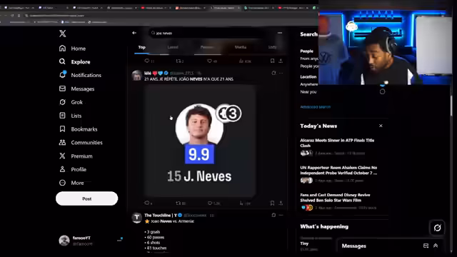 00:55:49Der Streamer wechselt zu den Highlights des Portugal-Spiels gegen Armenien und kommentiert die zahlreichen Tore, darunter einen „wilden Ball“, der zu einem halben Eigentor führte, und weitere Treffer von João Neves und Bruno Fernandes. Er lobt die Leistung der portugiesischen Mannschaft und spekuliert über mögliche Nominierungen für das „Team of the Week“ in FIFA, insbesondere für Bruno Fernandes und João Neves, die beide einen Hattrick erzielten. Er schätzt den Marktwert von João Neves auf dem Transfermarkt auf 90 Millionen Euro und äußert seine Überraschung über dessen Leistung. Die Diskussion schließt mit einer Betrachtung des Irland-Ungarn-Spiels, bei dem Irland in der 96. Minute ein entscheidendes Tor erzielte und Ungarn aus der WM-Qualifikation warf, was zu Playoff-Spielen für Irland führt.
