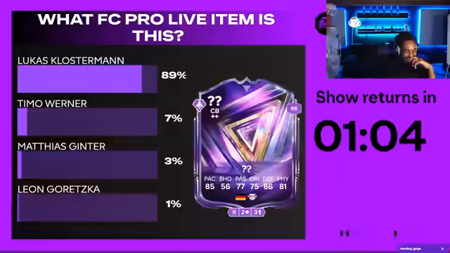 01:20:15Der Start des Black Friday-Events wurde für Donnerstag angesetzt. Es werden neue Versionen der Vorbestell-Icons in Packs erscheinen, die verbesserte Werte aufweisen. Gleichzeitig wird es eine Thunderstruck-Team-of-the-Week-Geb und das Best-of-Team-of-the-Week-Event geben. Der Streamer spricht über seine Parfüms und zeigt eine Kochaktion, bei der er versuchen möchte, eine bestimmte Karte mit dem Pelé-Team zu erspielen.