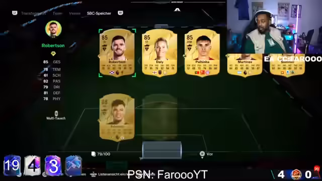 03:06:03Es werden Shop Packs geöffnet, wobei R9 gezogen wird. Es folgen Reaktionen auf die gezogenen Karten und Dankesreden an Sub-Gifter. Der Streamer gibt Ratschläge, Leihspieler zu testen, bevor man SBCs abschließt. Es wird überlegt, ob De Bruyne eine Icon-Karte erhalten sollte. Nach den Pack Openings werden 3x90+ Picks geöffnet, wobei ein Hero gezogen wird. Der Streamer äußert sich enttäuscht über die fehlenden Icons und Heroes in manchen Packs und kritisiert die frühe Abfangtaktik. Es wird überlegt, wer besser auf der ZDM-Position ist: Lahm oder Beckenbauer. Eine neue Evolution wird angeteasert, die möglicherweise Henry gewidmet ist. Chesney und Beckenbauer werden gekauft und ins Team integriert, um sie zu testen. Bale Baby wird ebenfalls getestet. Der Streamer testet Sola und äußert sich positiv überrascht.