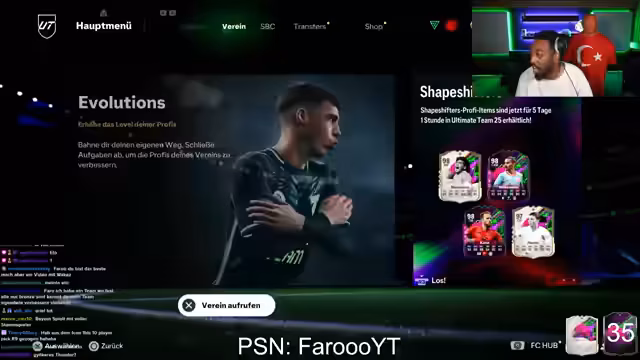 00:20:16Die Hauptschwerpunkt des Streams liegt auf dem Spielen von FIFA Ultimate Team (FUT). Der Streamer startet einen separaten 'RTG'-Account (Road to Glory), um an speziellen Belohnungen teilzunehmen. Es geht um das Sammeln von Coins, das Öffnen von Packen, die Evolution von Spielern und die Teilnahme an SBCs (Squad Building Challenges). Er unternimmt Versuche, wertvolle Spieler wie Ödegaard oder Van Dijk zu ziehen oder zu kaufen, wobei er über den Zustand des Marktes und die Strategien für den Erhalt der Shapeshifter-Beute diskutiert.