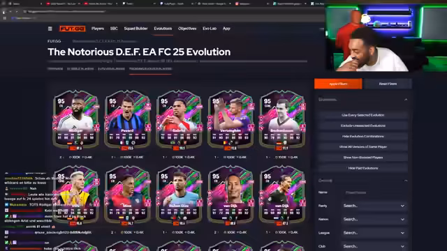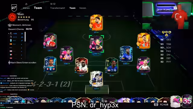 03:59:53Der Streamer testet verschiedene Spielerkarten, wie Ödegard und Conte Sau, und gibt seine Einschätzungen zu deren Spielstil und Nützlichkeit. Anschließend öffnet er ein Shapeshifter Pack und ist überrascht, als eine normale Shapeshifter-Karte darin enthalten ist. Er diskutiert über den Verlust kosmetischer Evos und fehlt noch einen bestimmten, starken Spieler für sein Team.