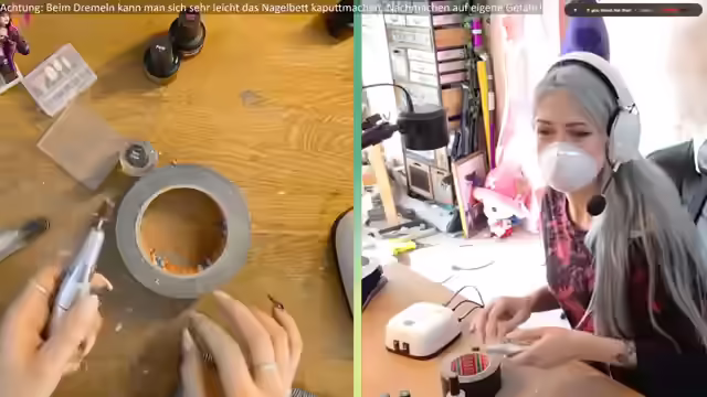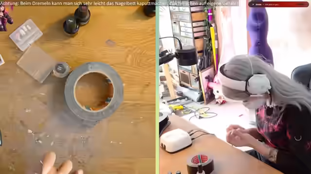 00:35:10Die Vorbereitungen für das Nageldesign beginnen mit dem Sichten von Screenshots, die Anweisungen enthalten. Es werden verschiedene Aufsätze für den Dremel identifiziert, darunter solche zum Polieren und Entfernen von Nagelgel. Es wird festgestellt, dass das Entfernen von Nagelgel eine halbe Wissenschaft ist. Eine Maske wird aufgesetzt, um sich vor dem Dremelstaub zu schützen. Es wird überlegt, welcher Aufsatz zum Entfernen der alten Modellage am besten geeignet ist, wobei eine Übersicht zu Hilfe genommen wird. Ein passender Aufsatz wird gefunden, der zuvor übersehen wurde. Die Streamerin schneidet die Nägel mit einer Schere, was sich als schwierig erweist, da die Nägel sehr dick sind. Sie hasst das Gefühl des Abklippens. Es wird erklärt, dass die aktuelle Schicht auf den Nägeln eine Verstärkung ist und nicht der eigentliche Nagel, was das Vorgehen etwas weniger riskant macht. Das größte Problem ist das fehlende Material für eine neue Verstärkung.