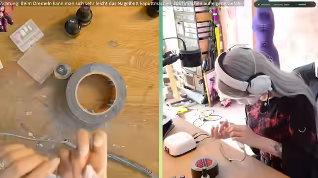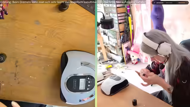 00:22:18Es wird ein Disclaimer im Chat und Stream hinzugefügt, da die Nägel zum ersten Mal selbst gemacht werden. Es folgt die Ankündigung, dass die Szene umgestellt wird. Die Streamerin äußert Bedenken bezüglich des Dremelns an den eigenen Fingern, möchte es aber ausprobieren. Im Chat wird über die Musikauswahl diskutiert und die bevorstehende Nagelbehandlung angekündigt. Die bestellten Artikel werden inspiziert und es wird festgestellt, dass einiges lose in der Packung liegt. Es handelt sich um einen Mitmach-Stream auf eigene Gefahr. Es wird erwähnt, dass die Streamerin auf der Gamescom viel mit einem Cosplay-Auftrag zu tun hatte und sich nun auf die Uni konzentriert. Sie muss noch nachsehen, für welche Kurse sie zugelassen wurde. Es wird die Frage aufgeworfen, ob jemand im Chat bereits Erfahrungen mit dem Selbermachen von Nägeln mit Dremel oder Gel und UV hat. Die Streamerin äußert ihre Angst vor dem Dremeln, sieht aber eine Kostenersparnis im Vergleich zum Nagelstudio.