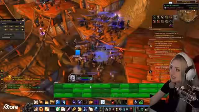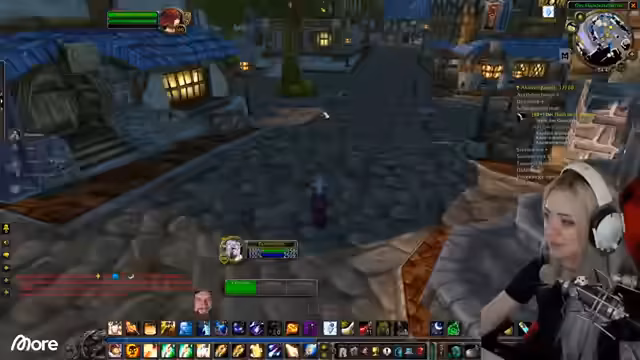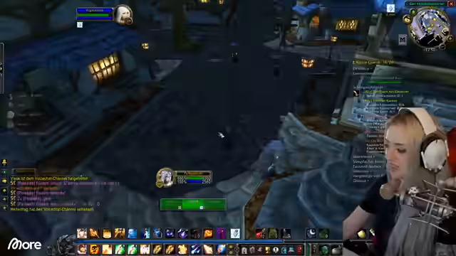 01:07:59Der Streamer wartet auf einen Welt-Buff in Booty Bay und verpasst den ersten. Er beschreibt die Verwirrung über das Portal in der Festung und den Kontrast zwischen der fröhlichen Stimmung in der Gilde und der eigenen Orientierungslosigkeit. Die Suche nach einem Party-Mitglied wie Grubby bleibt erfolgreich und es kommt zu Koordinationsproblemen im Chat.