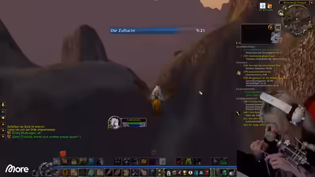 05:21:48Nach einer aktiven Session beschließt Streamer, sich kurz aus der Gruppe zurückzuziehen, um Quests abzugeben und einen Ingame-Buff in Stormwind zu holen. In dieser Zeit reflektiert er über die quest Routen und stellt fest, dass diese sich oft verändern. Er plant, weiter zu leveln und sucht nach effizienten Wegen, insbesondere zwischen Level 40 und 50. Streamer erwähnt auch, dass er von den Chat-Teilnehmern über mögliche neue Gebiete wie Westfall oder das Ödland informiert wird, und äußert seine Vorliebe für bestimmte Gebiete wie Schlingdornklamm.