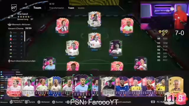 00:09:40Ein zentrales Thema ist der FIFA-Kartenmarkt. Der Streamer analysiert den Wert verschiedener Spieler wie Kürk-Jutsu Bechetasch, Shedin und Turam und kommt zu dem Schluss, dass einige Karten wie Shedin und Turam zu günstig sind. Er berichtet von erfolgreichen Verkäufen, Lauren James bei 1,15 Millionen und Matuidi bei 1,7 Millionen, und zeigt sich überrascht, dass diese Karten nicht weiter im Wert gefallen sind. Es gibt Diskussionen über Footies Heroes, und der Streamer plant, seine aufgesparten krassen Packs zu öffnen, um sein Team zu verbessern.