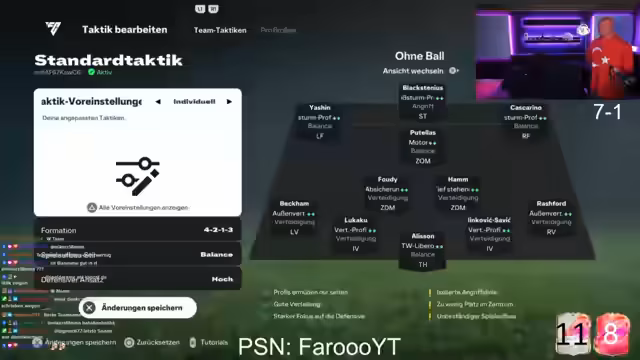 03:16:51Der Streamer kommentiert ein laufendes FIFA-Spiel mit großer Begeisterung. Nach einem entscheidenden Freistoß, den er als seinen schönsten bezeichnet, steht er mit 7-0 in der Weekend League. Der Fokus liegt auf dem Spielstil eines bestimmten Spielers, der als genial beschrieben wird. Er weist auf die TikTok-Zuschauer hin, die er auf seinen Twitch-Stream einlädt, und erwähnt seine persönliche Disziplin, die Spiele vor 19 Uhr zu absolvieren, um Kopfschmerzen zu vermeiden.