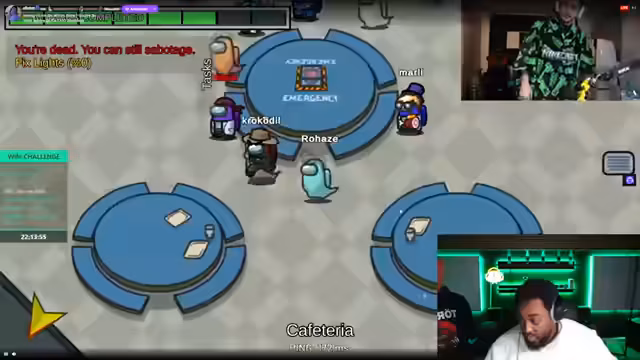 05:47:48Im Spiel wird eine Verfolgungsjagd im Bereich Electrical beschrieben. Der Streamer, Eli und Maus sind im selben Raum, während der Streamer Eli für den Imposter hält und vorgibt, ihn zu killen. Sein Ziel ist es, sich selbst und Maus zu sichern, da sie alleine im Raum sind. Er berichtet, dass er nach Security gelaufen ist, um von dort einen besseren Überblick zu erhalten und Leichen zu melden, was zu weiteren Verdächtigungen und Diskussionen unter den Spielern führt.