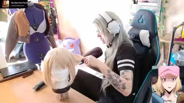 01:33:25Nach einem Raid beschwert sich der Streamer über die vielen Werbespots, die direkt danach gesendet werden. Er unterbricht das Styling, um auf die Lautsprecher zu reagieren. Nachdem er die Perücke weiter bearbeitet hat, stellt er fest, dass der Boden voller Haare und Flusen ist. Bei der Anprobe erkennt er, dass die Haare noch zu lang sind und beschließt, sie mit dem Haartrimmer weiter zu kürzen. Er arbeitet daran, dem gewünschten Look nahezukommen, indem er versucht, die Haare mit mehr Volumen und Bewegung zu gestalten.