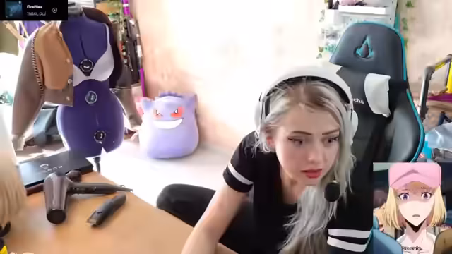 01:38:03Der Streamer ist unzufrieden mit der Farbe der Basecap für das Chahena-Cosplay und beschließt, sie mit Seidenmalfarbe zu färben. Nachdem er die Farbe mit Wasser verdünnt hat, pinselt er die Cap und hofft, dass sie eine homogene rosa Färbung annimmt. Während der Trocknungszeit setzt er die Perücke ab und versucht, den Pony nachzustylen. Er sorgt sich, dass die Farbe möglicherweise nicht gleichmäßig trocknet oder die Perücke verfärbt. Nach dem Trocknen ist die Cap etwas dunkler als gewünscht, aber der Streamer ist zufrieden mit dem Ergebnis.