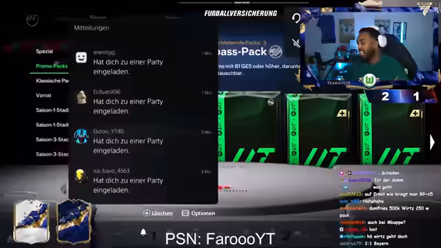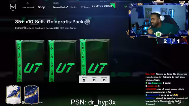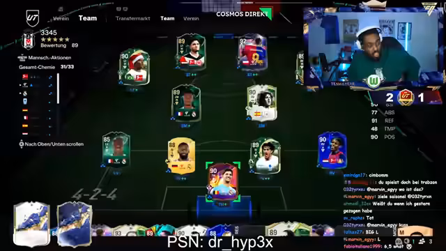 00:31:57Er identifiziert Gordon als potenziellen Kandidaten für eine Evo-Karte und fragt den Chat nach wertvollen Karten in seinem Verein. Er verkauft Delict und Parma-Dias und erreicht 1,7 Millionen Coins. Er kündigt an, dass er gleich zu den Leaks übergehen wird und betont, wie wichtig es ist, die aktuelle Content-reiche Zeit im Spiel zu genießen, da auch wieder tote Phasen kommen werden. Er öffnet weitere Packs und zieht Rolfo und Xavi. Er zieht Rito Teiken und wird von einem Zuschauer namens Leon auf den Goretzka-Treffer im Fußballspiel hingewiesen. Er verkauft Hegerberg und überlegt, ob er Kiesa verkaufen soll. Er öffnet ein 5-Pack und Numero-Footpack, ist aber enttäuscht vom Inhalt. Er öffnet ein 780 plus Winter Wildcard Hero oder Winter Wildcard Icon Pack auf seinem RTG Account und zieht Bauen tot. Er öffnet ein 85 x 30 Pack auf der RTG und zieht Chavi, den er bereits hat. Er zieht 99 passen die Jungen auf der RTG und freut sich darüber. Er zieht Frankie de Jong aus einem 89 Ball 5 Pack und bezeichnet seinen RTG-Account als Juice Chat.