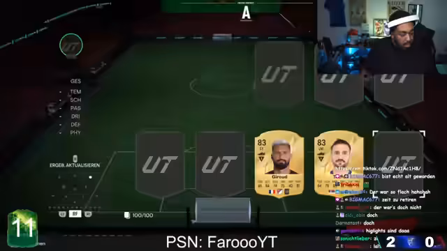 01:25:31Es wird die Möglichkeit diskutiert, dass Barcelona wieder Erster wird, wenn Real Madrid unentschieden spielt und Barca gewinnt, wobei die Fairness der Schiedsrichterentscheidungen in La Liga in Frage gestellt wird. Die Kosten für Arojo werden als zu hoch empfunden und verworfen. Es wird auf Kommentare bezüglich Einladungen wegen Bellyrods reagiert und die Häufigkeit solcher Nachrichten thematisiert. Der aktuelle Stand in der Weekend League wird erfragt und die Verbreitung von Maradona-Karten im Spiel festgestellt. Ein garantiertes Premium Grass-Food-Pack wird geöffnet, wobei die Erwartungen und die Wahrscheinlichkeit, eine Grassroot-Icon oder Hero-Karte zu ziehen, diskutiert werden. Es wird erwähnt, dass ein ehrenloses Dortmund-Video aufgenommen wurde und nach Meinungen zur neuesten Solo-Leveling-Folge gefragt. Abschließend werden Kameraqualität und Farbfilter im Stream überprüft und Sonnenbank-Besuche thematisiert.