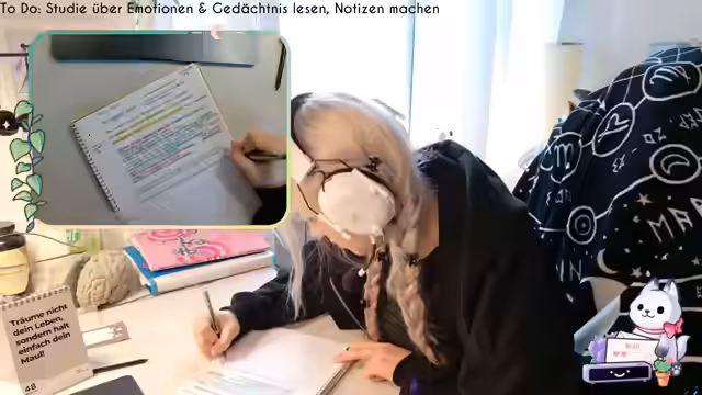 00:23:00Der Wochenplan ist derzeit von Uni-Verpflichtungen geprägt, insbesondere durch die Testung von Probanden für die Masterarbeit. Diese Testungen finden mittwochs und freitags statt, wobei es zu kurzfristigen Terminverschiebungen kommen kann, wie ein ausgefallener Termin am Freitagmorgen und ein Ersatztermin am Mittwochvormittag zeigen. Die Masterarbeit befasst sich grob mit dem Thema Gedächtnis und Emotionen, wobei speziell der Hippocampus, ein wichtiges Gehirnareal für Kurzzeit- und Langzeitgedächtnis, sowie die Amygdala als emotionales Zentrum untersucht werden. Es wird erklärt, dass emotionale Erlebnisse oft besser im Gedächtnis haften bleiben, was die Relevanz der Amygdala unterstreicht. Diese wissenschaftlichen Einblicke bieten einen spannenden Hintergrund für die Coworking-Streams und zeigen die Tiefe der akademischen Arbeit.