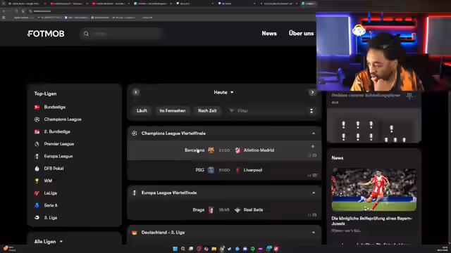 00:02:14Der Streamer analysiert intensiv das Champions-League-Rückspiel zwischen Bayern München und Real Madrid. Er bezeichnet das Ergebnis von 2:1 als sehr eng und spannend, was das Rückspiel in der Allianz Arena offen gestaltet. Es gibt kritische Worte für die Defensive von Real, während er Neus Lows Leistung stark lobt. Der Streamer ist überzeugt, dass Bayern Favorit ist und ins Finale einziehen wird, da sie seit der Gruppenphase als stärkstes Team gelten und ihre Dominanz unter Beweis gestellt haben.
