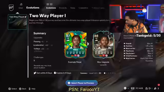 01:28:51Der Streamer analysiert die neuen FIFA-Karten, insbesondere eine Evo für einen Spieler mit passenden Playstyles. Er äußert Begeisterung für eine bestimmte Evo, die ohne Rating-Upgrades auskommt und stellt die Frage, warum sein Collins keinen Abfang-Playstyle erhält. Es folgen Überlegungen, wie durch gezielte Gold-Upgrades bei Playstyles der gewünschte Tiki-Taka-Playstyle freigeschaltet werden kann, was ihn frustriert.
